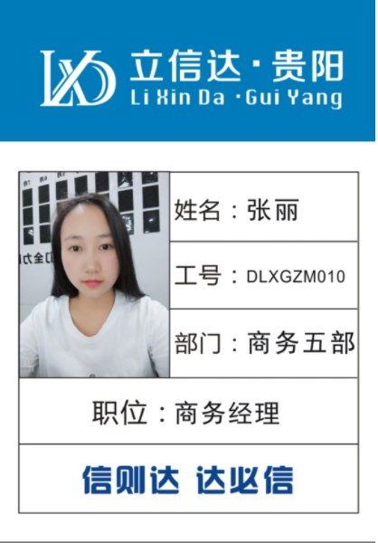 姓名:張麗 工號:DLXGZM010 部門:貴一五部 職位:商務經理