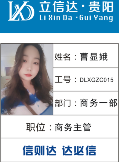 姓名:曹顯娥 工號(hào):DLXGZC015 部門:貴一一部 職位:商務(wù)主管