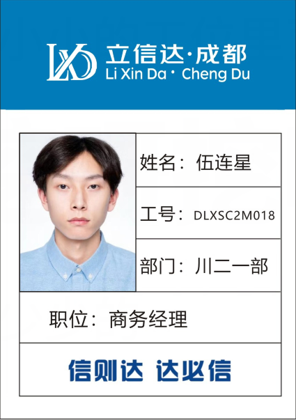 姓名:伍連星 工號:DLXSC2M018 部門:川二一部 職位:商務經(jīng)理