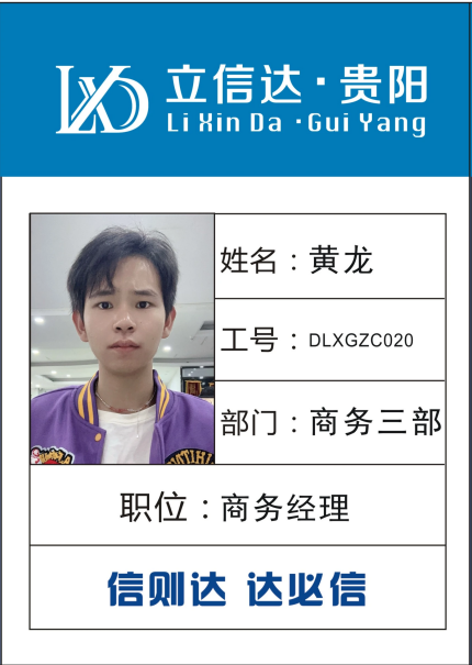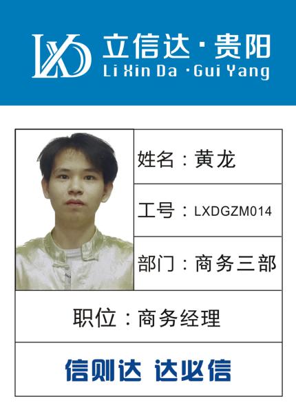 姓名:黃龍 工號(hào):LXDGZM014 部門:貴一三部 職位:商務(wù)經(jīng)理