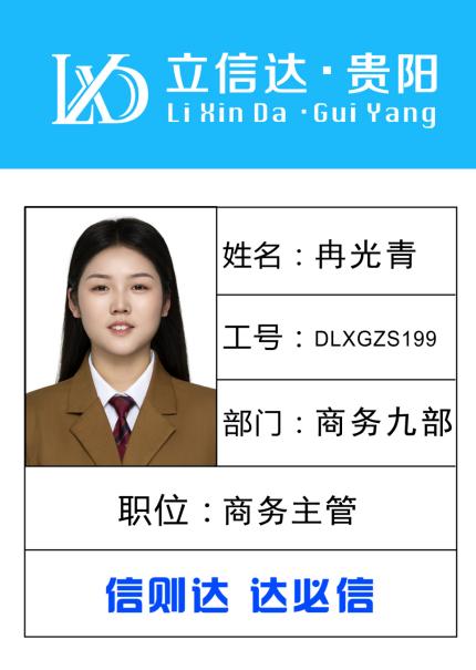 姓名:冉光青 工號:DLXGZC022 部門:貴二九部 職位:商務(wù)主管