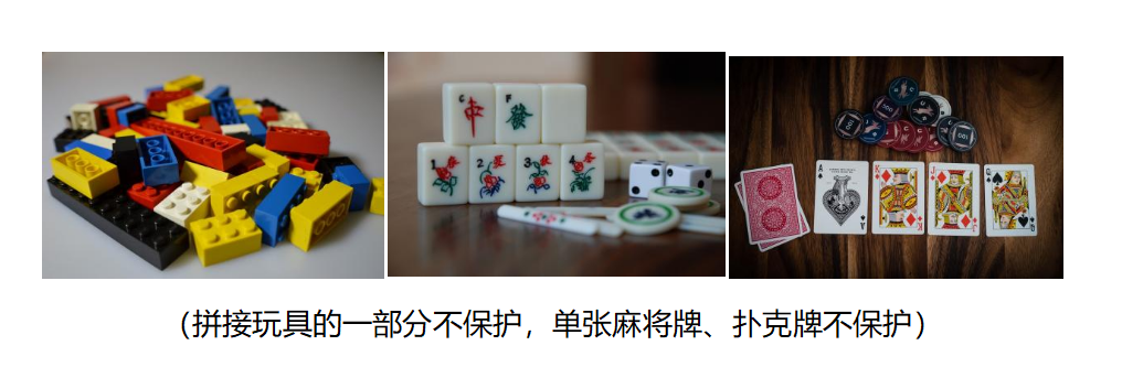 例如:拼圖積木等玩具中的插接塊不能獲得保護。