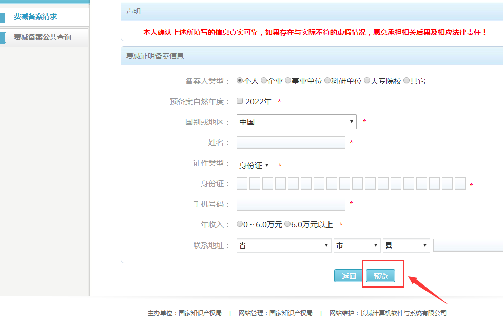 (5)填寫(xiě)好相關(guān)備案信息,點(diǎn)擊“預(yù)覽”