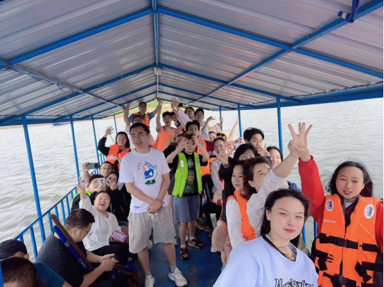 到了地方之后,開始了安營扎寨,過程雖有波瀾,但好在大大小小的帳篷都拔地而起,熱鬧過后看到了停靠在岸邊的船只,大家又不約而同的決定乘船。山里長大的孩子總是對水情有獨(dú)鐘,等了一會,船終于開了,風(fēng)很大,卻吹不走美妙的景色,吹不走我們的熱情。