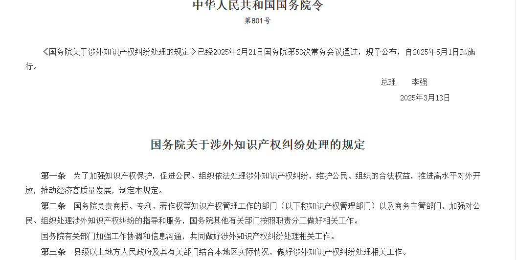 自2025年5月1日起,《國務(wù)院關(guān)于涉外知識產(chǎn)權(quán)糾紛處理的規(guī)定》正式實施,新規(guī)明確政府將加強(qiáng)指導(dǎo)和服務(wù),支持調(diào)解、仲裁等高效解決糾紛的方式,并鼓勵企業(yè)設(shè)立維權(quán)互助基金,降低維權(quán)成本。無論是出海企業(yè)還是深耕國內(nèi)的公司,都能更安心地維護(hù)自己的權(quán)益。新規(guī)的出臺,標(biāo)志著我國在知識產(chǎn)權(quán)保護(hù)方面邁出了重要的一步,為國內(nèi)外企業(yè)提供了更加公平、透明的法律環(huán)境,進(jìn)一步激發(fā)了創(chuàng)新活力和市場活力。